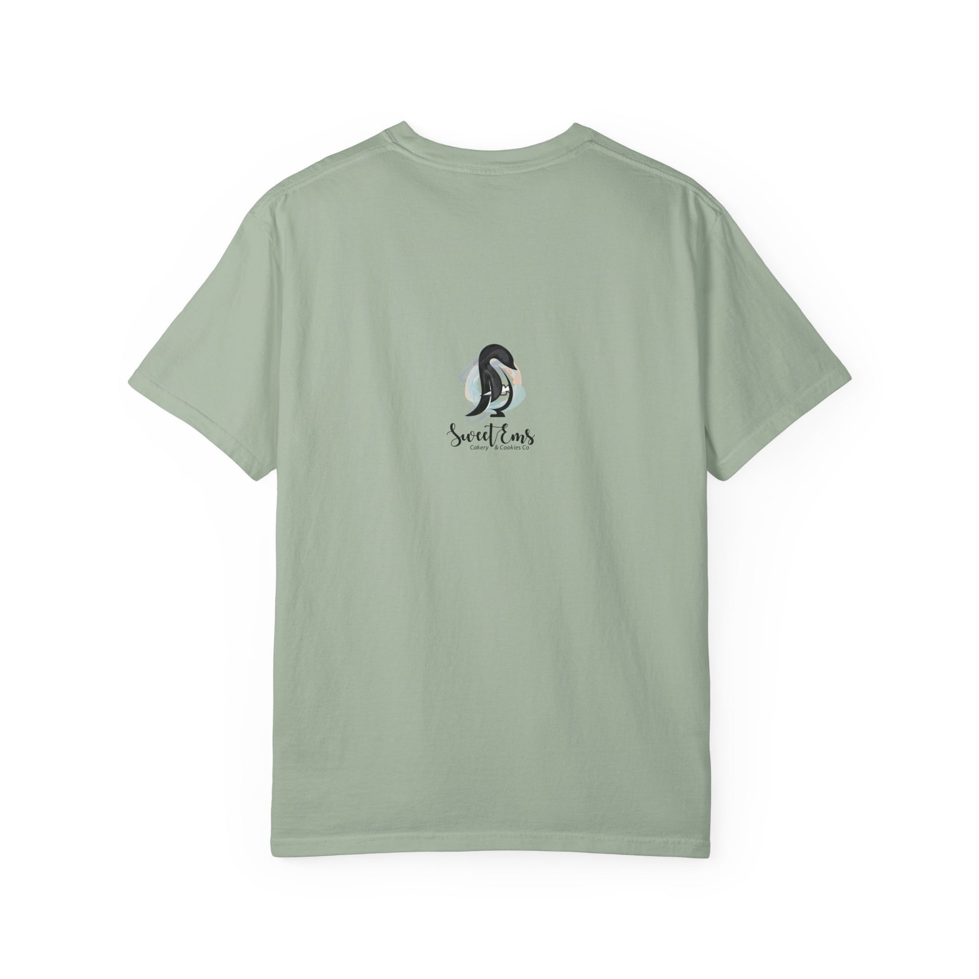 Theme/Features: sleepy penguin illustration, hand-lettered phrase, garment-dyed soft wash, heavyweight cotton texture