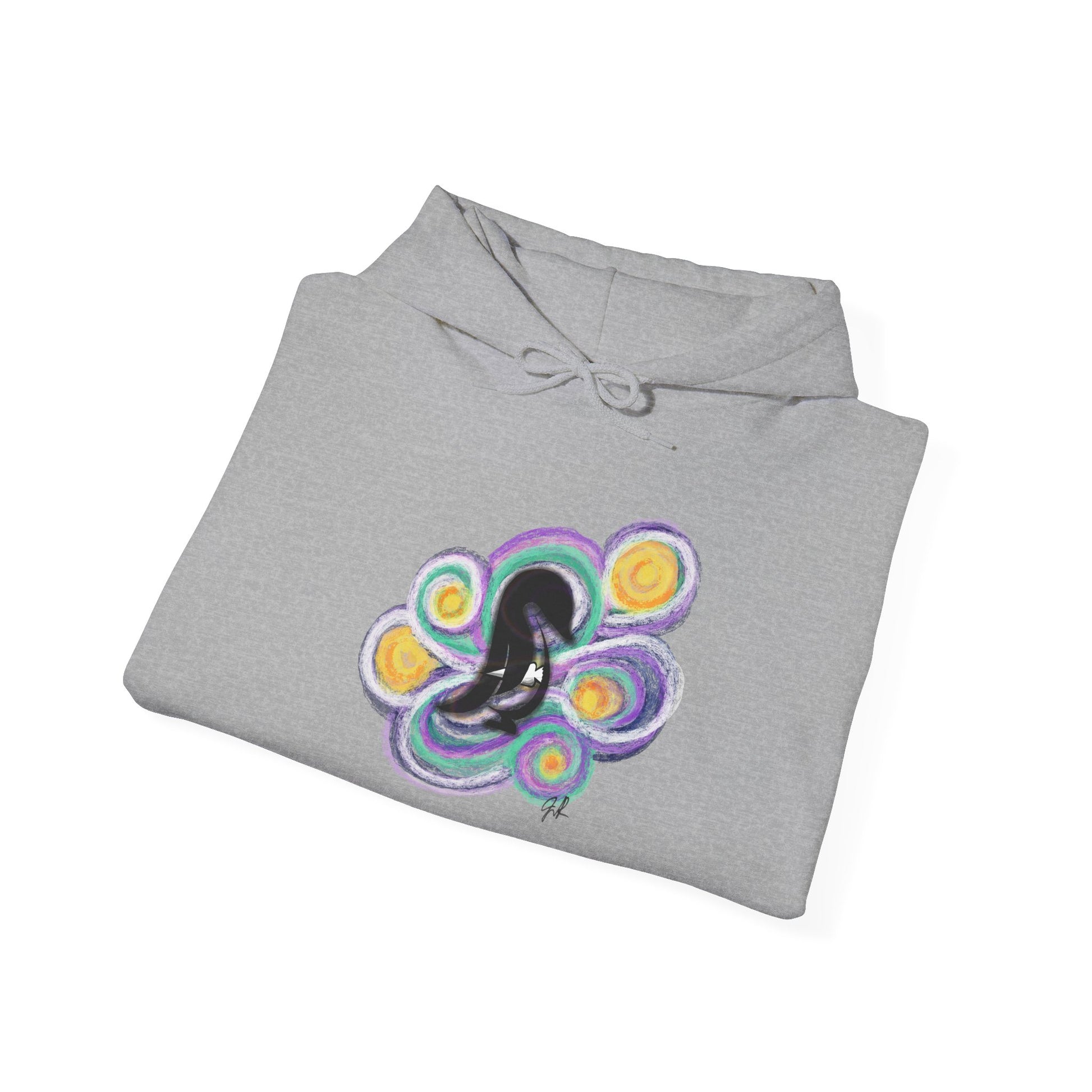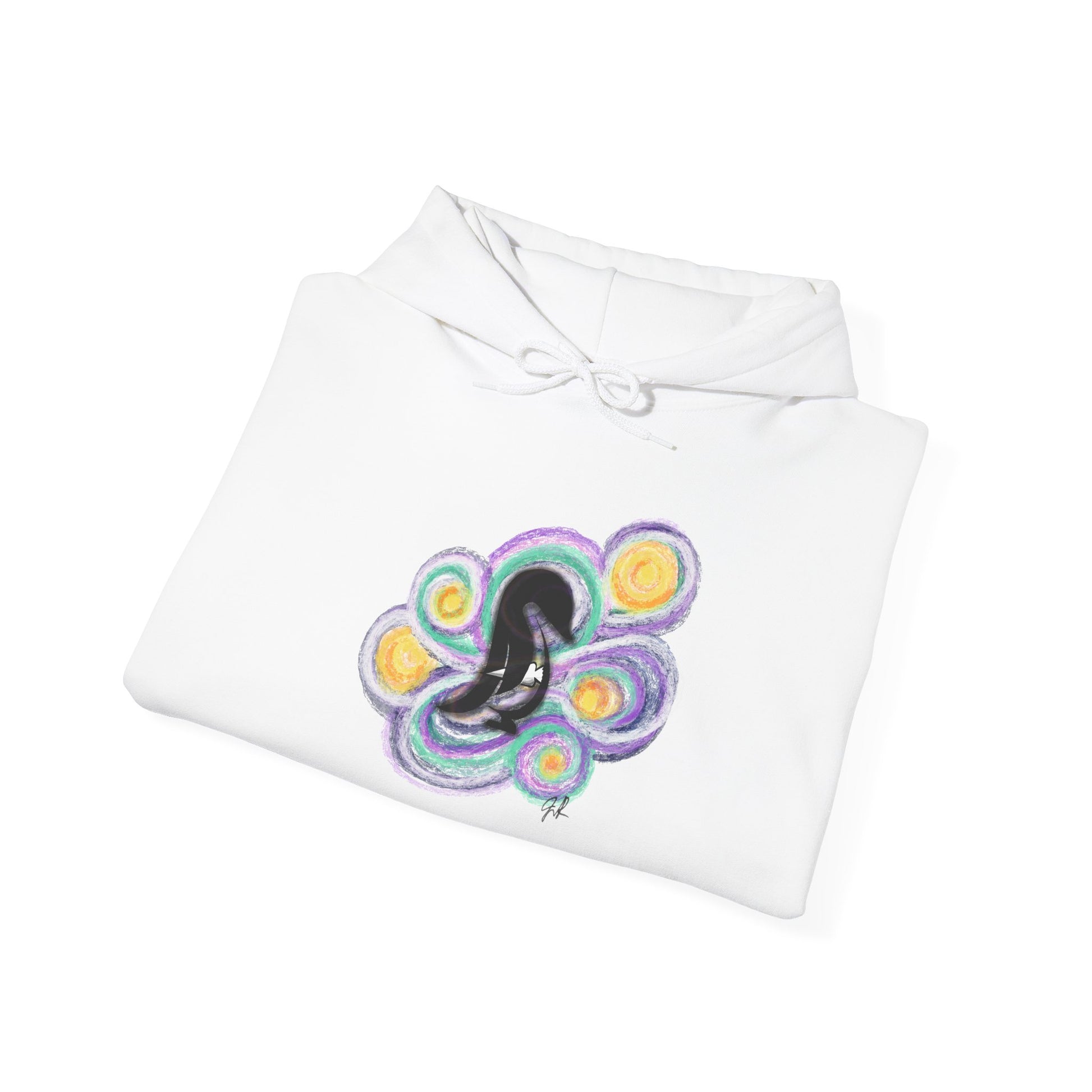 A soft, cozy hooded sweatshirt that carries a quiet, whimsical energy. A small, dreamy graphic sits at the chest—a hand-drawn silhouette curled within swirling moons and soft orbs—bringing a gentle, late-night reverie to a classic white hoodie. The kangaroo pocket and double-lined hood make it easy to layer on cool evenings. Wear it when you’re sketching at your kitchen table, strolling under streetlights, or sinking into a weekend of slow playlists and warm tea. Subtle sleeve branding and a tear-away label keep the feel clean and effortless, while the blend of cotton and polyester holds the print and shape wash after wash. This hoodie leans into calm creativity and the kind of comfort that invites you to pause and create.